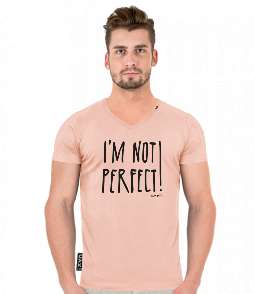 We make sustainable UAX clothing! - hand sewn in the Czech Republic uaxMen uaxAll productsT-shirtsT-SHIRTS SLIM FIT V NECKdesign 1230 - IM NOT PERFECTPEACH