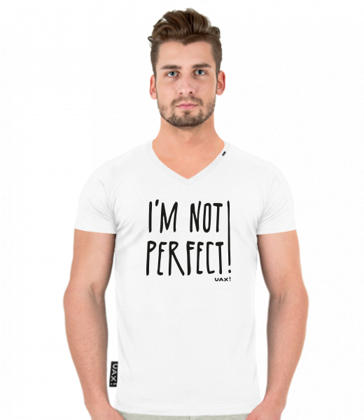 We make sustainable UAX clothing! - hand sewn in the Czech Republic uaxMen uaxAll productsT-shirtsT-SHIRTS SLIM FIT V NECKdesign 1230 - IM NOT PERFECTWHITE