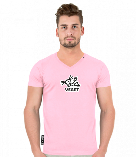 We make sustainable UAX clothing! - hand sewn in the Czech Republic uaxMen uaxAll productsT-shirtsT-SHIRTS SLIM FIT V NECKdesign 1239 - VEGETBABY PINK