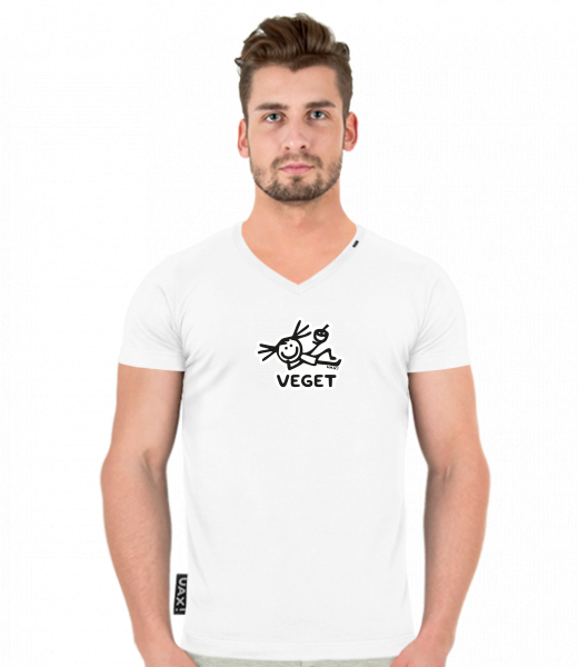 Men's T-shirt SLIM FIT with V nec for man with design 1239 VEGET in color WHITE