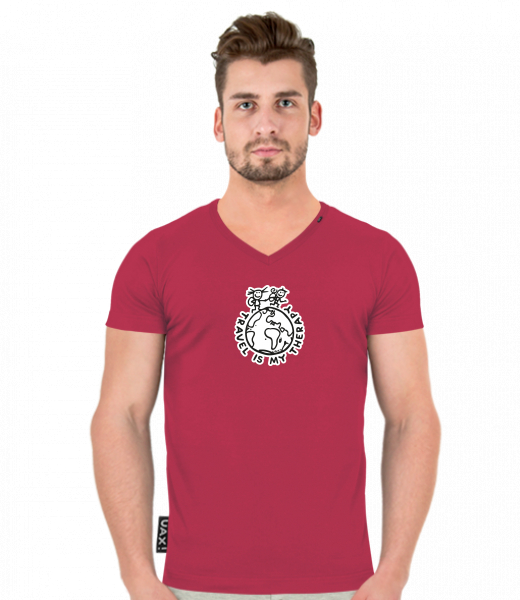 We make sustainable UAX clothing! - hand sewn in the Czech Republic uaxMen uaxAll productsT-shirtsT-SHIRTS SLIM FIT V NECKdesign 1240 - TRAVEL IS MY THERAPYCHILLY PEPPER RED