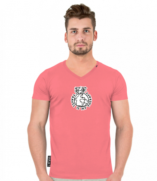 We make sustainable UAX clothing! - hand sewn in the Czech Republic uaxMen uaxAll productsT-shirtsT-SHIRTS SLIM FIT V NECKdesign 1240 - TRAVEL IS MY THERAPYLOSOSOVA