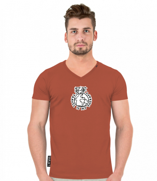 We make sustainable UAX clothing! - hand sewn in the Czech Republic uaxMen uaxAll productsT-shirtsT-SHIRTS SLIM FIT V NECKdesign 1240 - TRAVEL IS MY THERAPYTERRA