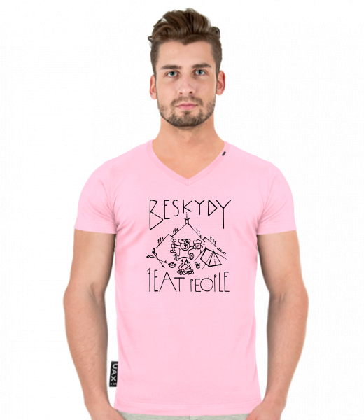 We make sustainable UAX clothing! - hand sewn in the Czech Republic uaxMen uaxAll productsT-shirtsT-SHIRTS SLIM FIT V NECKdesign 1241 - I EAT PEOPLE BESKYDYBABY PINK