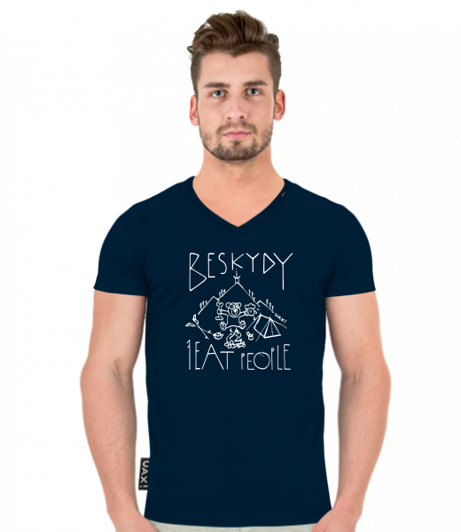 Men's T-shirt SLIM FIT with V nec for man with design 1241 I EAT PEOPLE BESKYDY in color DARK NAVY