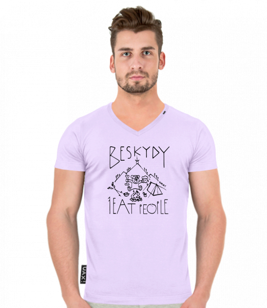 We make sustainable UAX clothing! - hand sewn in the Czech Republic uaxMen uaxAll productsT-shirtsT-SHIRTS SLIM FIT V NECKdesign 1241 - I EAT PEOPLE BESKYDYLAVENDER