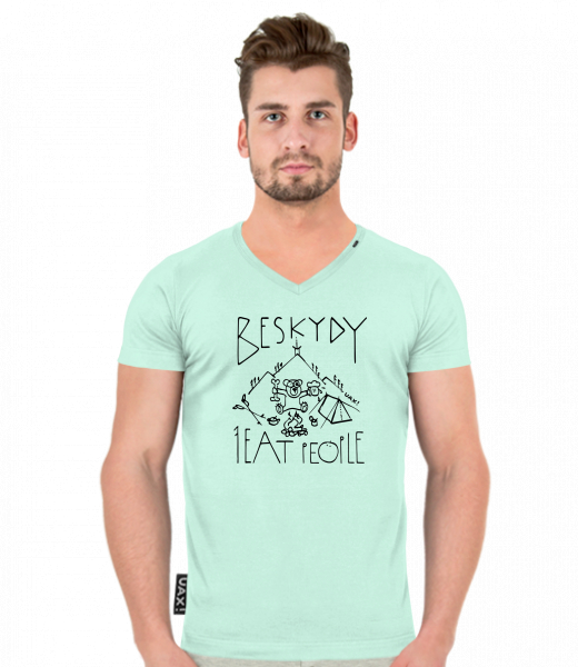 We make sustainable UAX clothing! - hand sewn in the Czech Republic uaxMen uaxAll productsT-shirtsT-SHIRTS SLIM FIT V NECKdesign 1241 - I EAT PEOPLE BESKYDYMINT