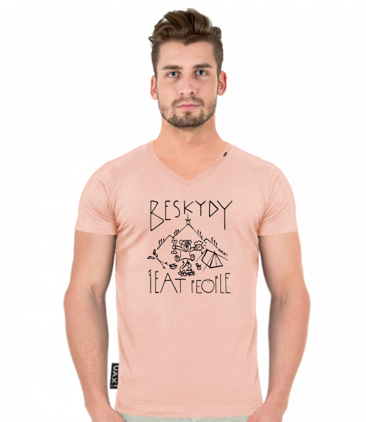 We make sustainable UAX clothing! - hand sewn in the Czech Republic uaxMen uaxAll productsT-shirtsT-SHIRTS SLIM FIT V NECKdesign 1241 - I EAT PEOPLE BESKYDYPEACH