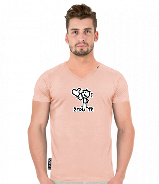 Men's T-shirt SLIM FIT with V nec for man with design 1244 ŽERU TĚ in color PEACH