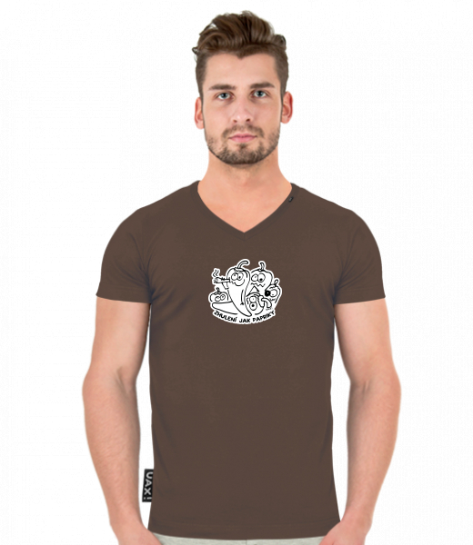 We make sustainable UAX clothing! - hand sewn in the Czech Republic uaxMen uaxAll productsT-shirtsT-SHIRTS SLIM FIT V NECKdesign 1245 - ZHULENÍ JAK PAPRIKYCHESTNUT
