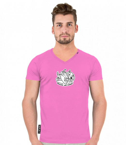We make sustainable UAX clothing! - hand sewn in the Czech Republic uaxMen uaxAll productsT-shirtsT-SHIRTS SLIM FIT V NECKdesign 1245 - ZHULENÍ JAK PAPRIKYCLASSIC PINK