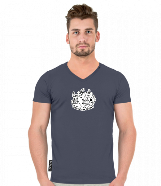 We make sustainable UAX clothing! - hand sewn in the Czech Republic uaxMen uaxAll productsT-shirtsT-SHIRTS SLIM FIT V NECKdesign 1245 - ZHULENÍ JAK PAPRIKYGRAY INK