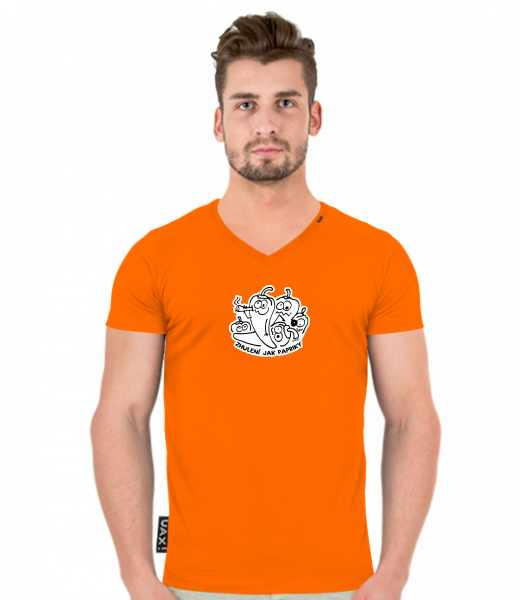 We make sustainable UAX clothing! - hand sewn in the Czech Republic uaxMen uaxAll productsT-shirtsT-SHIRTS SLIM FIT V NECKdesign 1245 - ZHULENÍ JAK PAPRIKYSIGNAL ORANGE