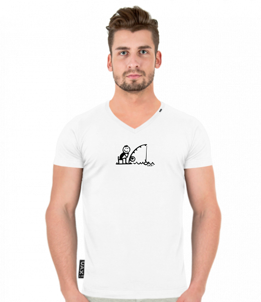 We make sustainable UAX clothing! - hand sewn in the Czech Republic uaxMen uaxAll productsT-shirtsT-SHIRTS SLIM FIT V NECKdesign 1252 - RYBÁŘWHITE