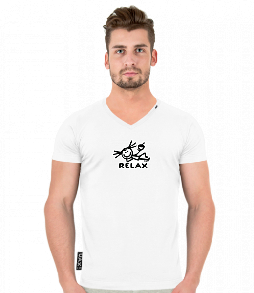 We make sustainable UAX clothing! - hand sewn in the Czech Republic uaxMen uaxAll productsT-shirtsT-SHIRTS SLIM FIT V NECKdesign 1256 - RELAX GIRLWHITE