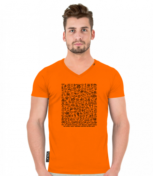 We make sustainable UAX clothing! - hand sewn in the Czech Republic uaxMen uaxAll productsT-shirtsT-SHIRTS SLIM FIT V NECKdesign 1261 - BRNĚNSKÝ HANTECSIGNAL ORANGE