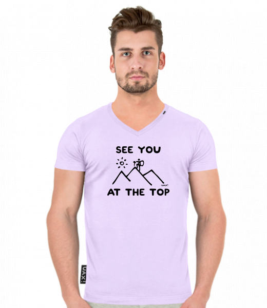 Men's T-shirt SLIM FIT with V nec for man with design 1263 SEE YOU AT THE TOP in color LAVENDER