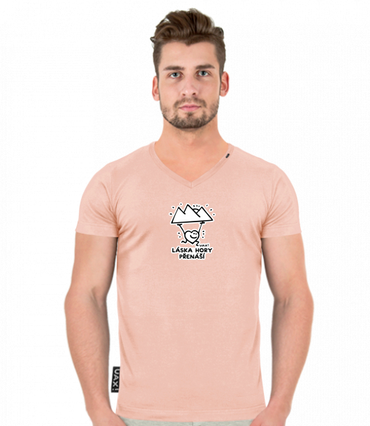 Men's T-shirt SLIM FIT with V nec for man with design 1264 LÁSKA HORY PŘENÁŠÍ in color PEACH