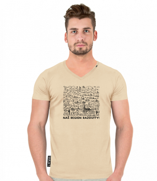 We make sustainable UAX clothing! - hand sewn in the Czech Republic uaxMen uaxAll productsT-shirtsT-SHIRTS SLIM FIT V NECKdesign 1267 - REGION RAZOVITYCARAMEL