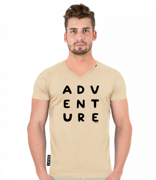 We make sustainable UAX clothing! - hand sewn in the Czech Republic uaxMen uaxAll productsT-shirtsT-SHIRTS SLIM FIT V NECKdesign 1270 - ADVENTURECARAMEL