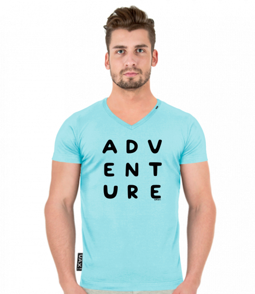 We make sustainable UAX clothing! - hand sewn in the Czech Republic uaxMen uaxAll productsT-shirtsT-SHIRTS SLIM FIT V NECKdesign 1270 - ADVENTUREPASTEL BLUE