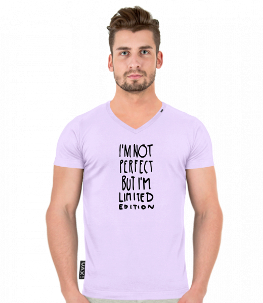 Men's T-shirt SLIM FIT with V nec for man with design 1289 IM NOT PERFECT in color LAVENDER