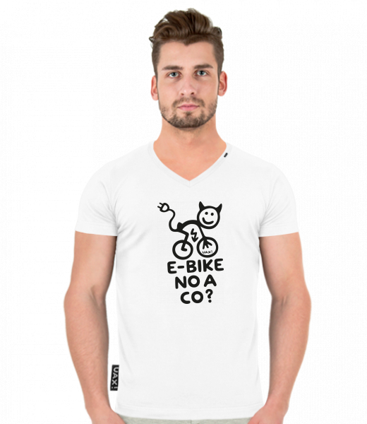 We make sustainable UAX clothing! - hand sewn in the Czech Republic uaxMen uaxAll productsT-shirtsT-SHIRTS SLIM FIT V NECKdesign 1291 - E-BIKE NO A CO?