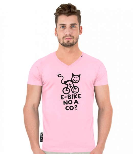 We make sustainable UAX clothing! - hand sewn in the Czech Republic uaxMen uaxAll productsT-shirtsT-SHIRTS SLIM FIT V NECKdesign 1291 - E-BIKE NO A CO?BABY PINK