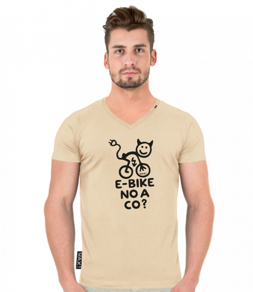 We make sustainable UAX clothing! - hand sewn in the Czech Republic uaxMen uaxAll productsT-shirtsT-SHIRTS SLIM FIT V NECKdesign 1291 - E-BIKE NO A CO?CARAMEL