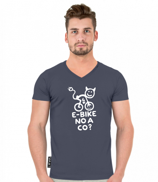 We make sustainable UAX clothing! - hand sewn in the Czech Republic uaxMen uaxAll productsT-shirtsT-SHIRTS SLIM FIT V NECKdesign 1291 - E-BIKE NO A CO?GRAY INK