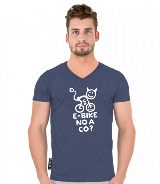 Men's T-shirt SLIM FIT with V nec for man with design 1291 E-BIKE NO A CO? in color JEANS
