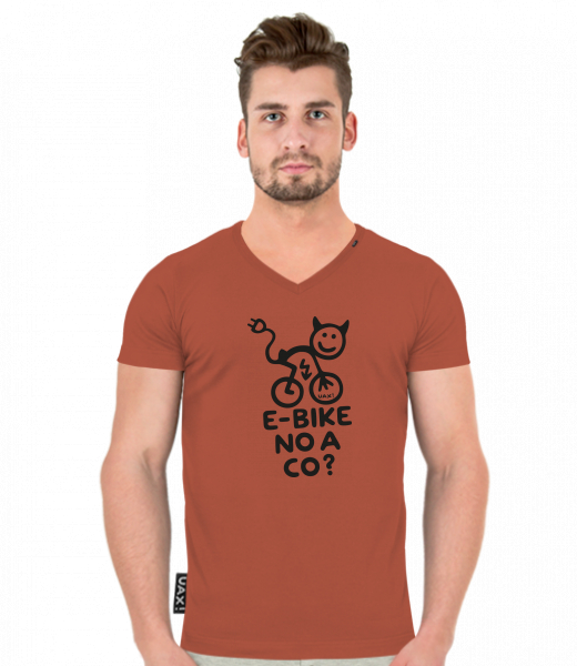 Men's T-shirt SLIM FIT with V nec for man with design 1291 E-BIKE NO A CO? in color TERRA