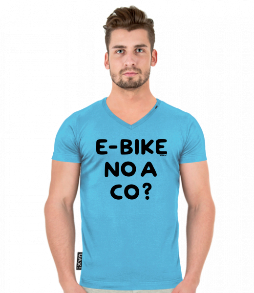 We make sustainable UAX clothing! - hand sewn in the Czech Republic uaxMen uaxAll productsT-shirtsT-SHIRTS SLIM FIT V NECKdesign 1292 - E-BIKE NO A CO?BLUE ATOLL