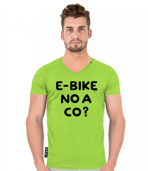 We make sustainable UAX clothing! - hand sewn in the Czech Republic uaxMen uaxAll productsT-shirtsT-SHIRTS SLIM FIT V NECKdesign 1292 - E-BIKE NO A CO?PARROT GREEN