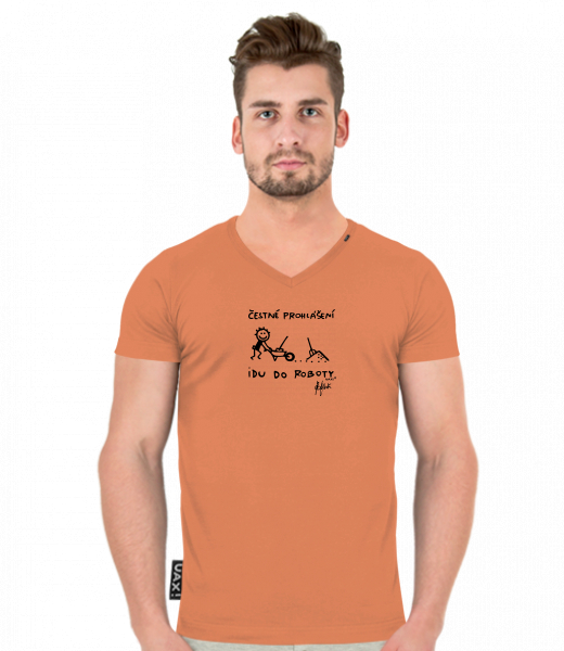 Men's T-shirt SLIM FIT with V nec for man with design 1303 ČESTNÉ PROHLÁŠENÍ IDU DO ROBOTY in color MANDARIAN ORANGE