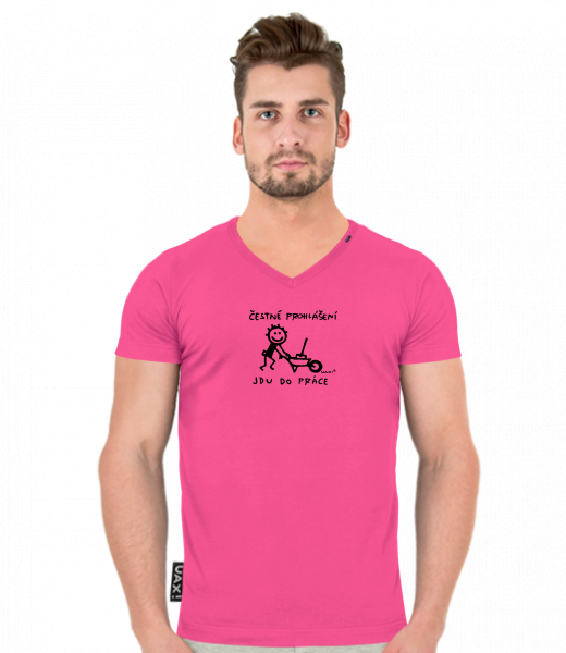 Men's T-shirt SLIM FIT with V nec for man with design 1305 ČESTNÉ PROHLÁŠENÍ JDU DO PRÁCE 2 in color INDIAN LILA