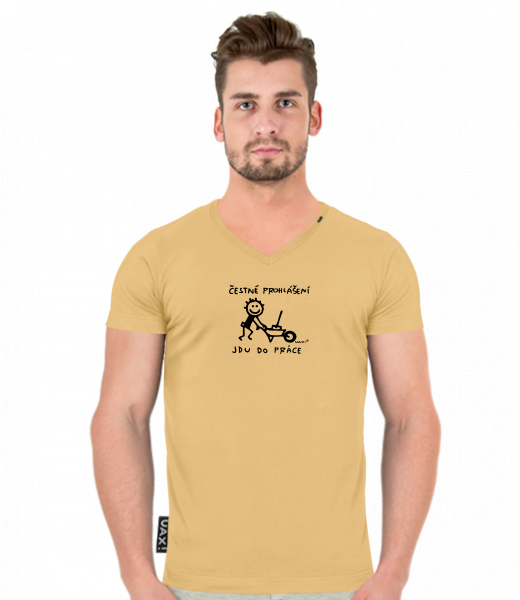 We make sustainable UAX clothing! - hand sewn in the Czech Republic uaxMen uaxAll productsT-shirtsT-SHIRTS SLIM FIT V NECKdesign 1305 - ČESTNÉ PROHLÁŠENÍ JDU DO PRÁCE 2MUSTARD