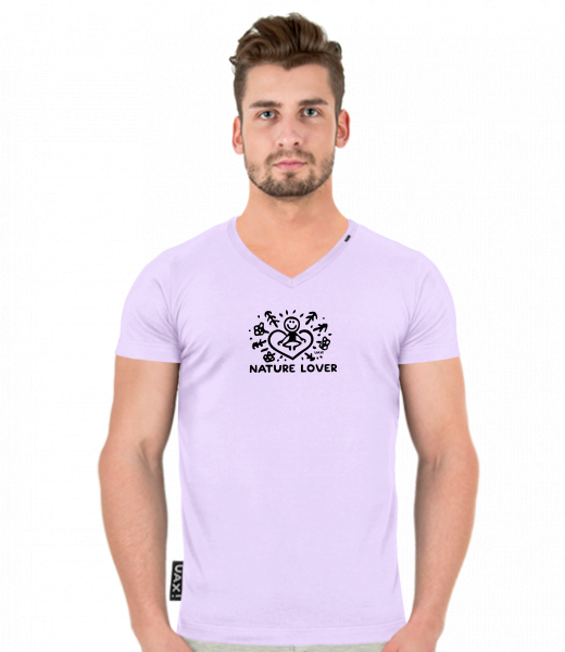 Men's T-shirt SLIM FIT with V nec for man with design 1325 NATURE LOVER in color LAVENDER