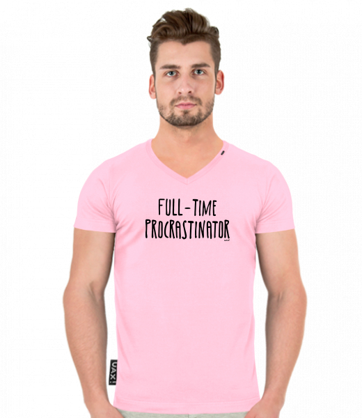 We make sustainable UAX clothing! - hand sewn in the Czech Republic uaxMen uaxAll productsT-shirtsT-SHIRTS SLIM FIT V NECKdesign 1334 - FULL-TIME PROCRASTINATORBABY PINK