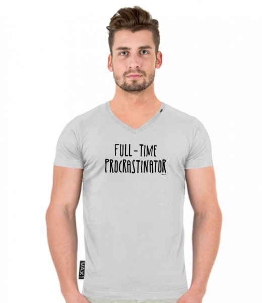 We make sustainable UAX clothing! - hand sewn in the Czech Republic uaxMen uaxAll productsT-shirtsT-SHIRTS SLIM FIT V NECKdesign 1334 - FULL-TIME PROCRASTINATORCEMENT