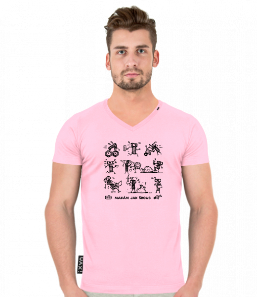 We make sustainable UAX clothing! - hand sewn in the Czech Republic uaxMen uaxAll productsT-shirtsT-SHIRTS SLIM FIT V NECKdesign 1343 - MAKÁM JAK ŠROUB 2BABY PINK