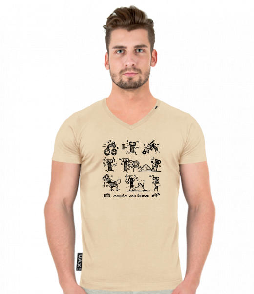 We make sustainable UAX clothing! - hand sewn in the Czech Republic uaxMen uaxAll productsT-shirtsT-SHIRTS SLIM FIT V NECKdesign 1343 - MAKÁM JAK ŠROUB 2CARAMEL