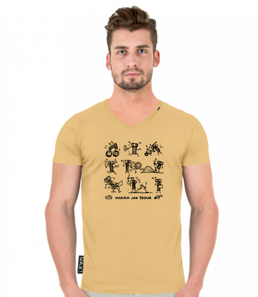 We make sustainable UAX clothing! - hand sewn in the Czech Republic uaxMen uaxAll productsT-shirtsT-SHIRTS SLIM FIT V NECKdesign 1343 - MAKÁM JAK ŠROUB 2MUSTARD