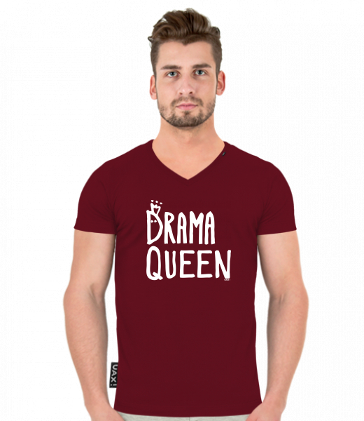 Men's T-shirt SLIM FIT with V nec for man with design 1350 DRAMA QUEEN in color DARK RED