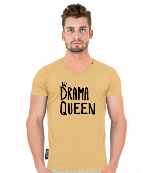 We make sustainable UAX clothing! - hand sewn in the Czech Republic uaxMen uaxAll productsT-shirtsT-SHIRTS SLIM FIT V NECKdesign 1350 - DRAMA QUEENMUSTARD