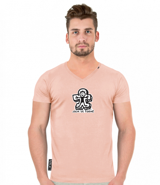 Men's T-shirt SLIM FIT with V nec for man with design 1351 JSEM VE FORMĚ in color PEACH | UAX.cz