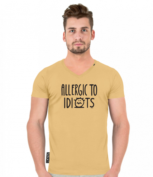 We make sustainable UAX clothing! - hand sewn in the Czech Republic uaxMen uaxAll productsT-shirtsT-SHIRTS SLIM FIT V NECKdesign 1354 - ALLERGIC TO IDIOTSMUSTARD