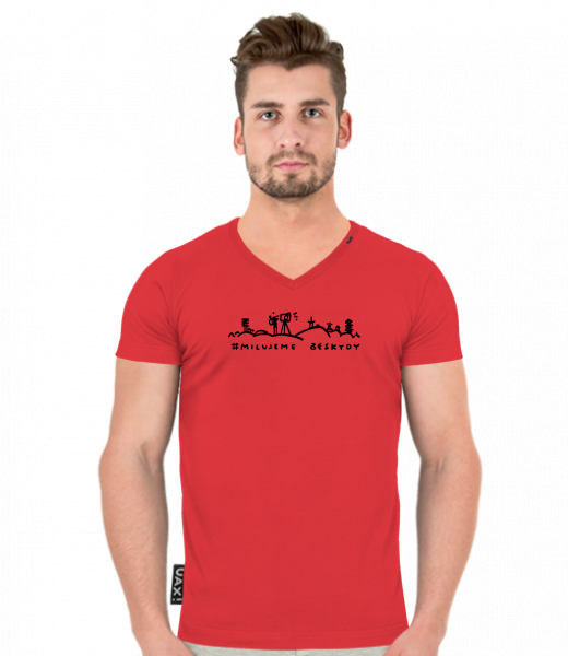 We make sustainable UAX clothing! - hand sewn in the Czech Republic uaxMen uaxAll productsT-shirtsT-SHIRTS SLIM FIT V NECKdesign 1355 - MILUJEME BESKYDY 1RED