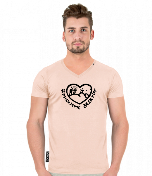 We make sustainable UAX clothing! - hand sewn in the Czech Republic uaxMen uaxAll productsT-shirtsT-SHIRTS SLIM FIT V NECKdesign 1356 - MILUJEME BESKYDY 2CAPPUCINO