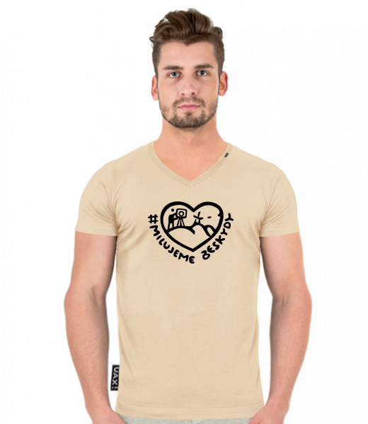 We make sustainable UAX clothing! - hand sewn in the Czech Republic uaxMen uaxAll productsT-shirtsT-SHIRTS SLIM FIT V NECKdesign 1356 - MILUJEME BESKYDY 2CARAMEL